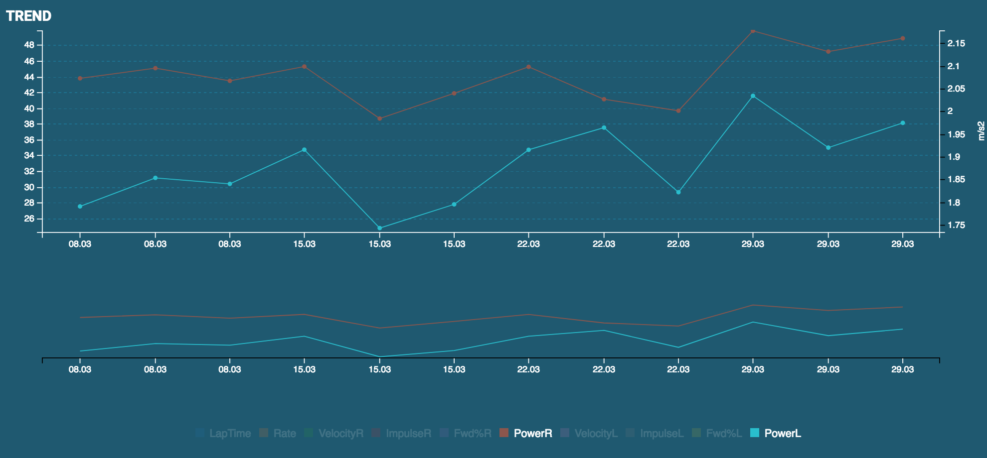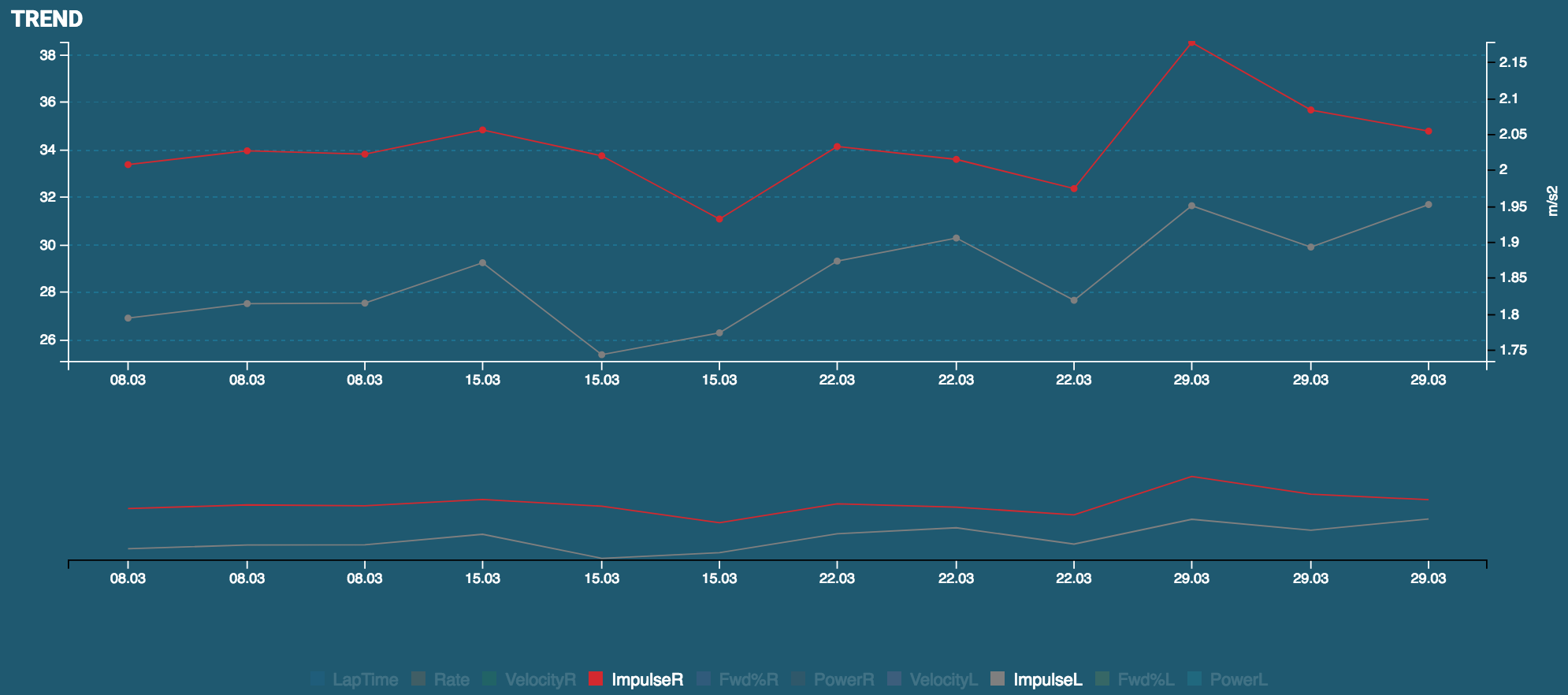 Tittar man på trenderna ovan med power och impuls så har Anna förbättrat sig stadigt över de 5 veckor hon jobbat med SmartPaddle-analyser och teknikförbättring. Nu återstår bara att se hur det går på Swim Open i Stockholm nästa vecka – stort lycka till Anna och alla andra simmare!